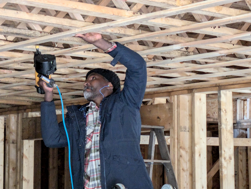 The Lord provided us with insulation, and half of it has been installed. We are still working on insulating the second floor. We have a kerosene heater, and a fuel tank was donated. We heat the building three days a week so volunteers can work indoors during the winter. More volunteers are still needed. We really need more volunteers.